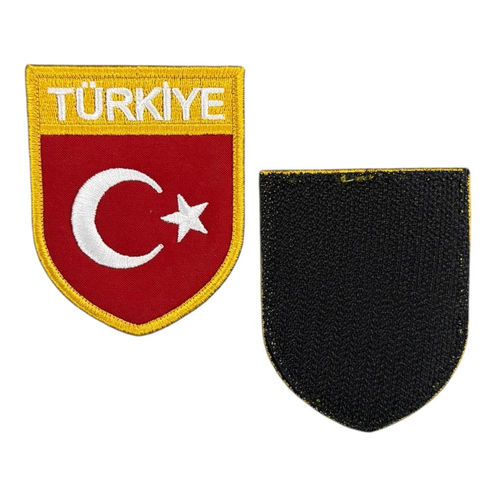 Türkiye Yazılı Türk Bayrağı Nakış Peç Patch Arkası Cırtlı Arma Ebat: 6.5 x 8 cm